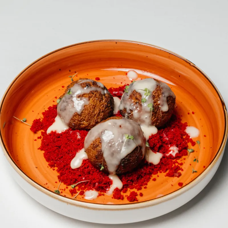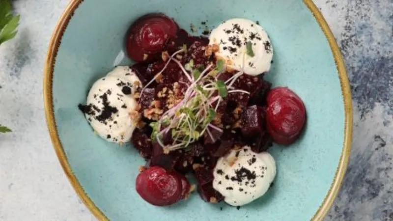 С карамелизированными орехами и кремом из феты, под медово-горчичным соусом