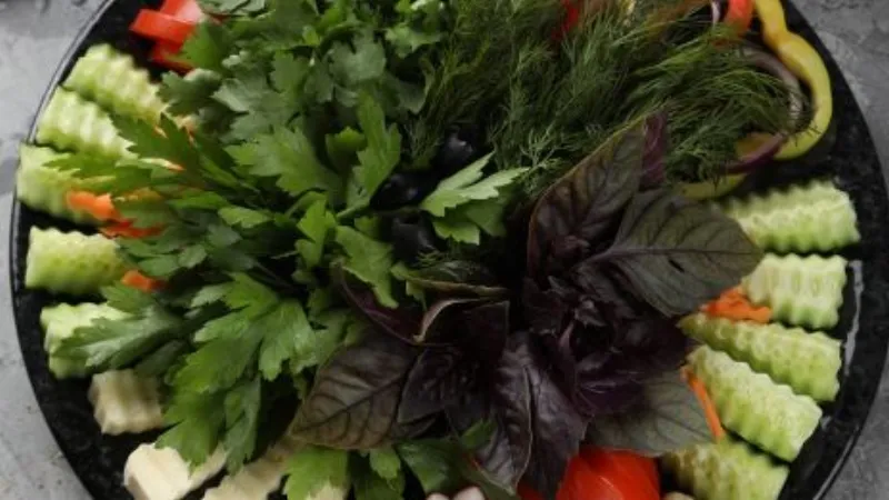 С пряными травами, миксом салата, тертыми орехами, с соусом из зернистой горчицы