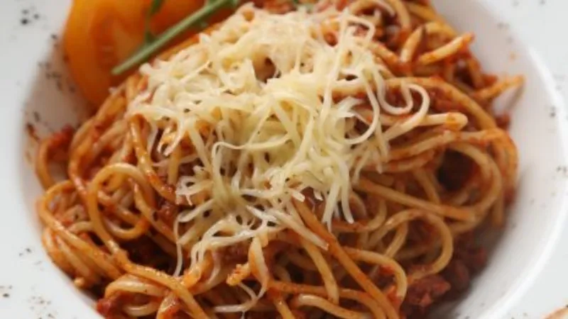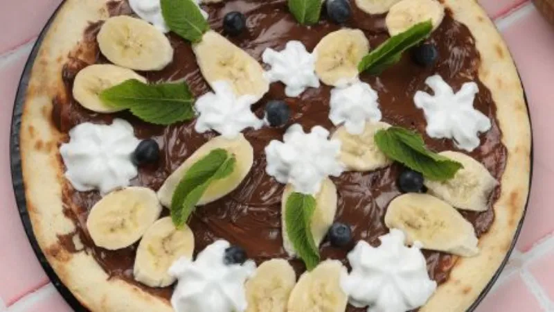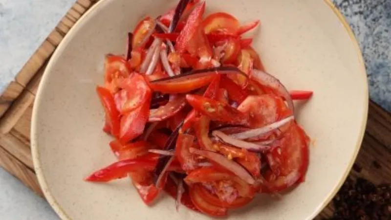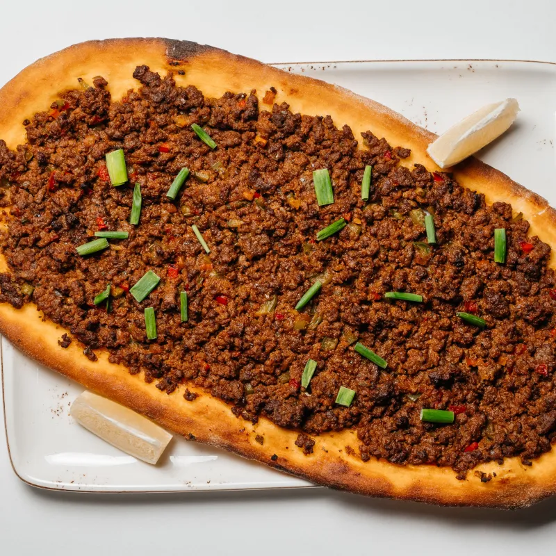 Казы, жая, cыр моцарелла, томатный соус, красный и зеленый лук