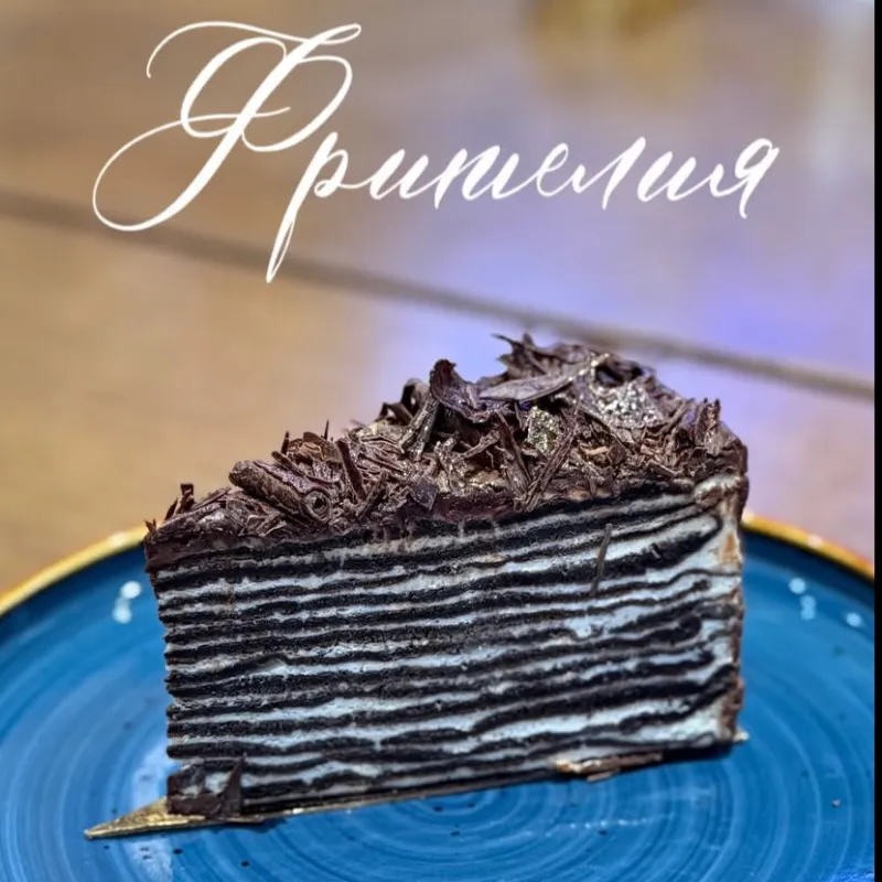 •нежные шоколадные блинчики •воздушный кремчиз •покрытые шоколадным креме •посыпанные шоколадными крошками