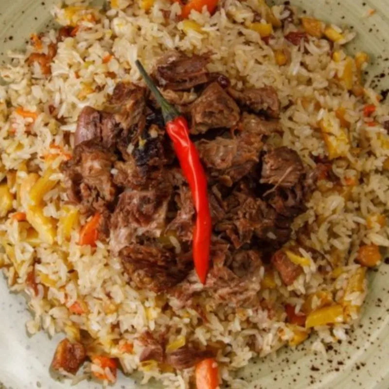 Плов в слоенном тесте, с казы и перепелиным яйцом