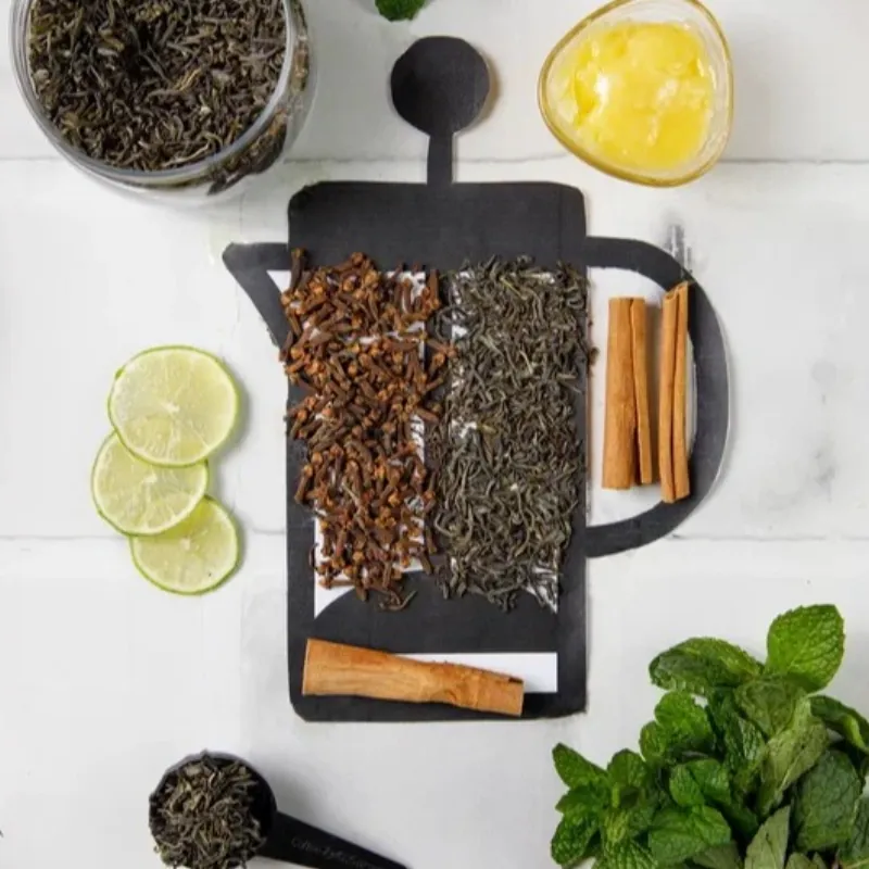 Зеленый чай на основе сока лайма, меда и специй , с добавлением свежей мяты