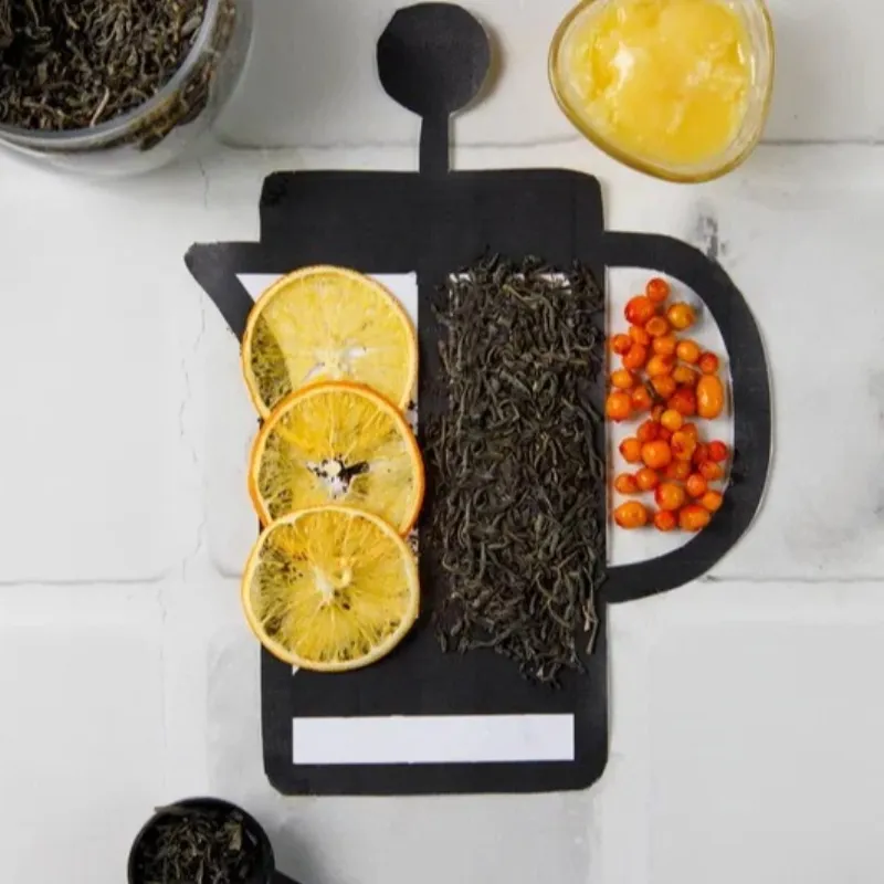 Черный чай , на основе ягод облепихи , с добавлением цитрусов и натурального меда