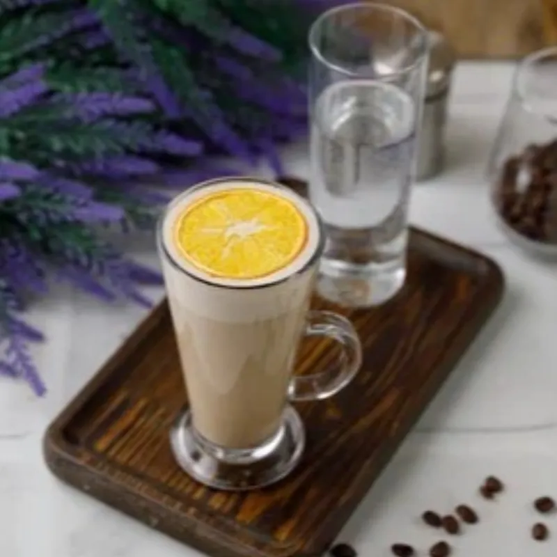 Эспрессо, апельсиновая цедра , сливки 10% жирности, карамельный сироп