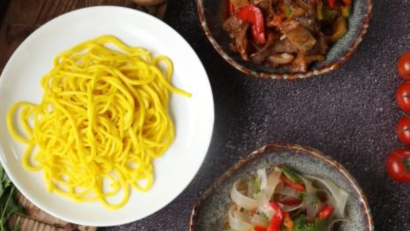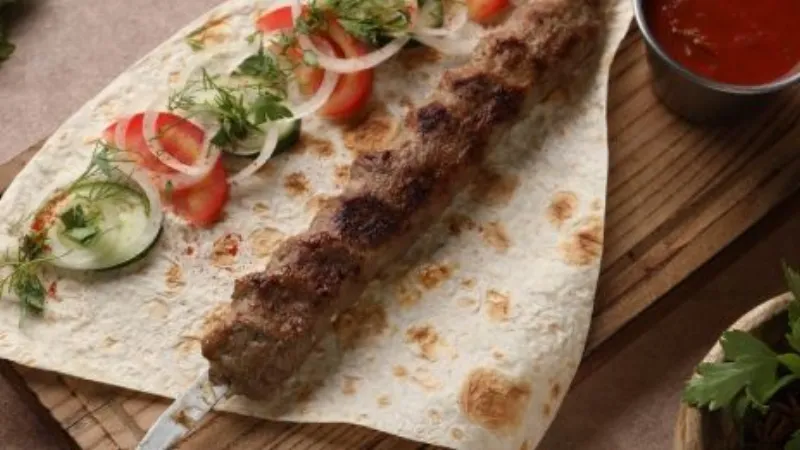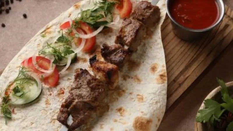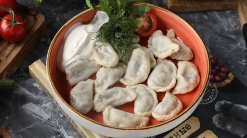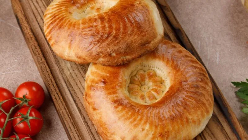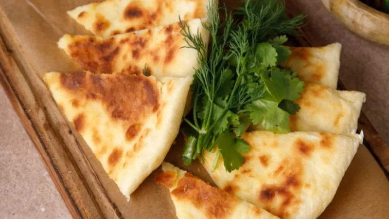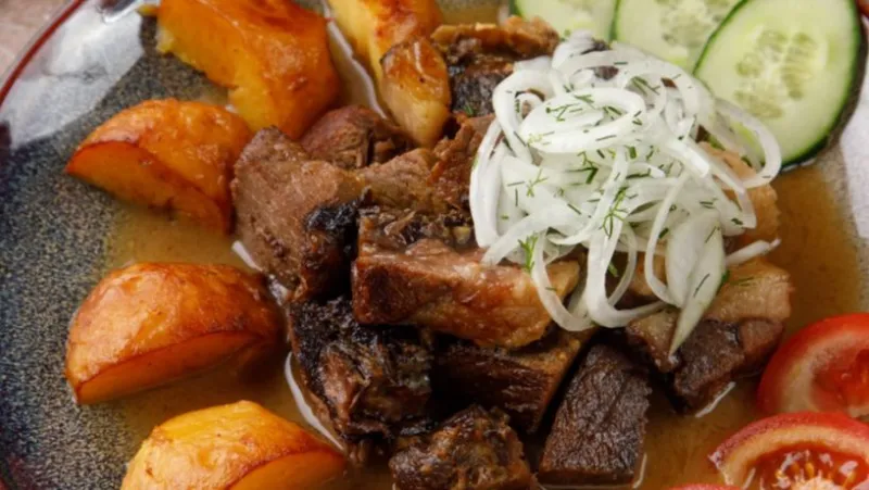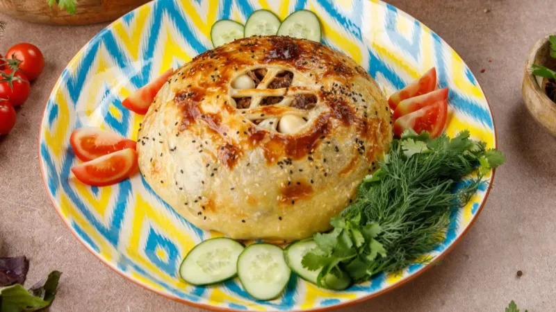 Тесто, казы, жая, марковь, лук, зел лук, подастся с шурпой и жидким куртом