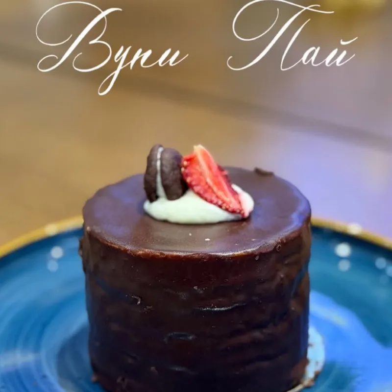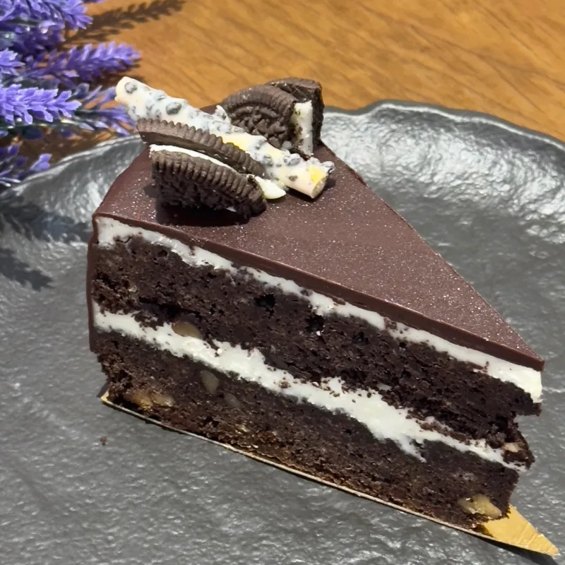 • Масленный шоколадный бисквит с грецким ореохом • Печенье орео • Крем чиз • Поливка глазурь Гурме