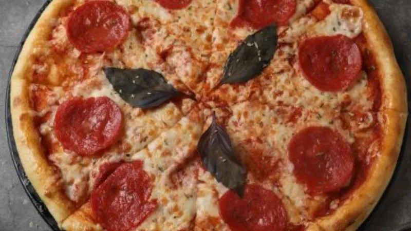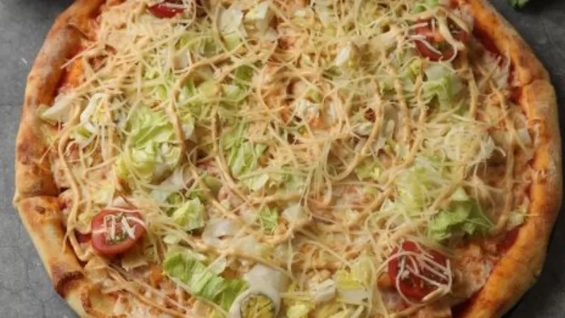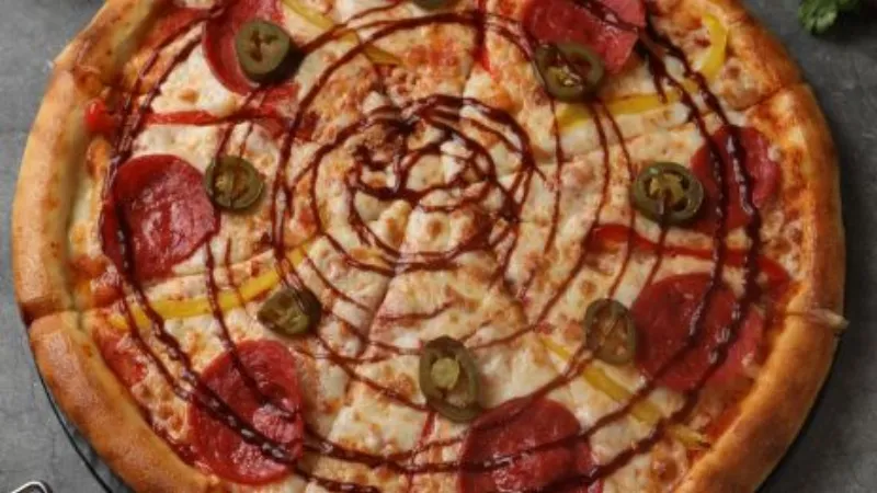 Мексиканская пицца с колбасой, болгарским перцем, халапеньо и пикантным соусом bbq