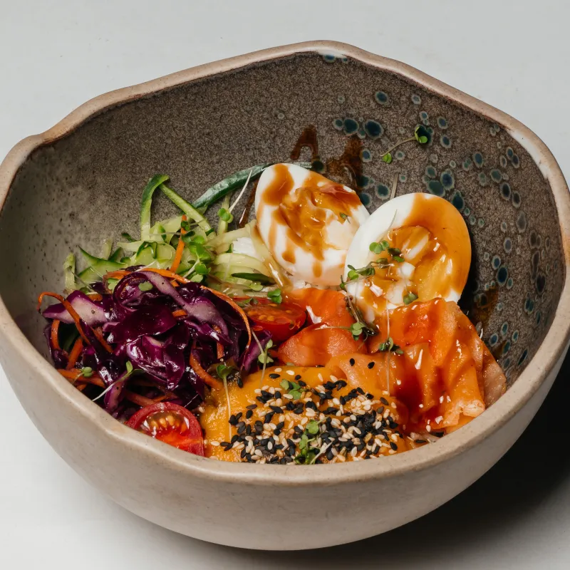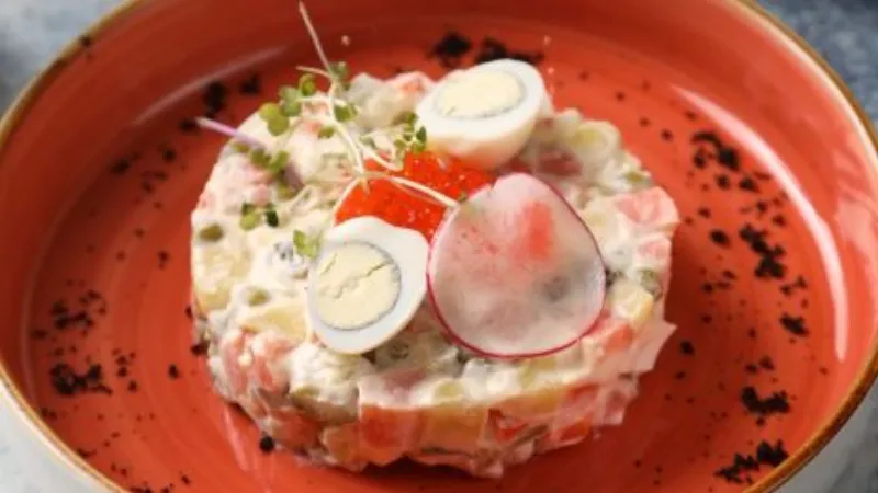 С малосольной семгой, перепелиными яйцами и домашним майонезом