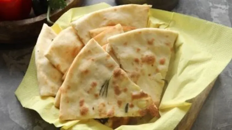 Тесто на кефире начинённое с сыром слугуни и моцарелла на гриле