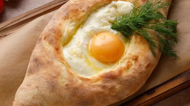 Хачапури — блюдо грузинской кухни, грузинское национальное мучное изделие, пирожок с начинкой из сыра и яйца