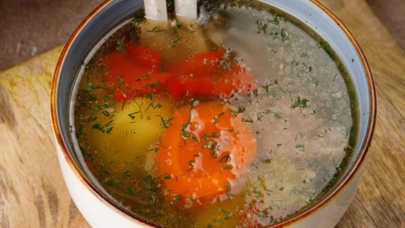 Наваристый бульон из баранины с картофелем, морковью и светофором