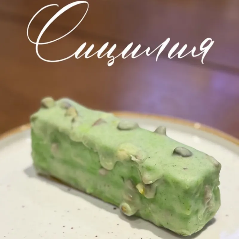 • Три слоя фисташкового бисквита • Конфи грейпфрут-киви • Фисташковый мусс • Глазурь «гурме» с фисташкой и семечками