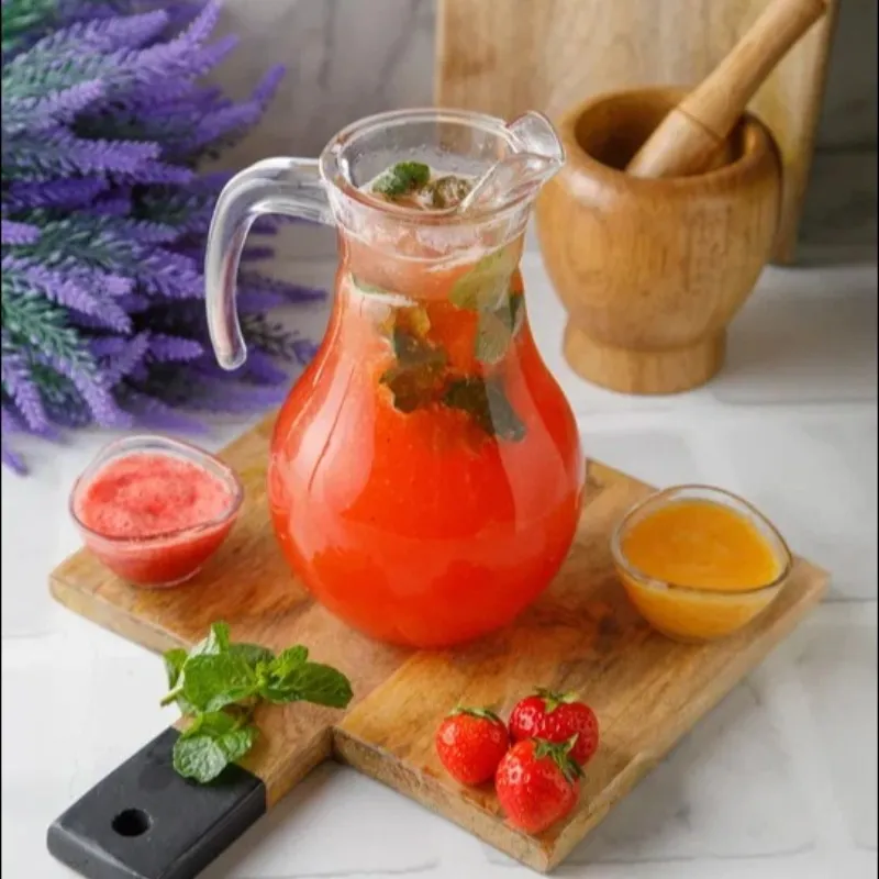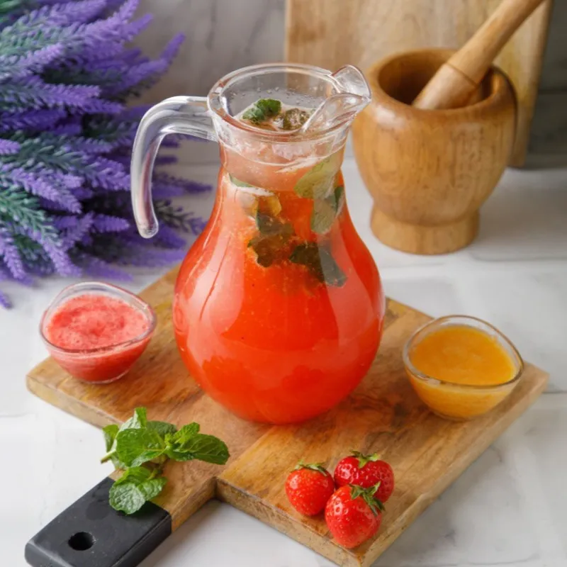 Микс из пюре клубники и манго, мята, лимонный сок, содовая, лед