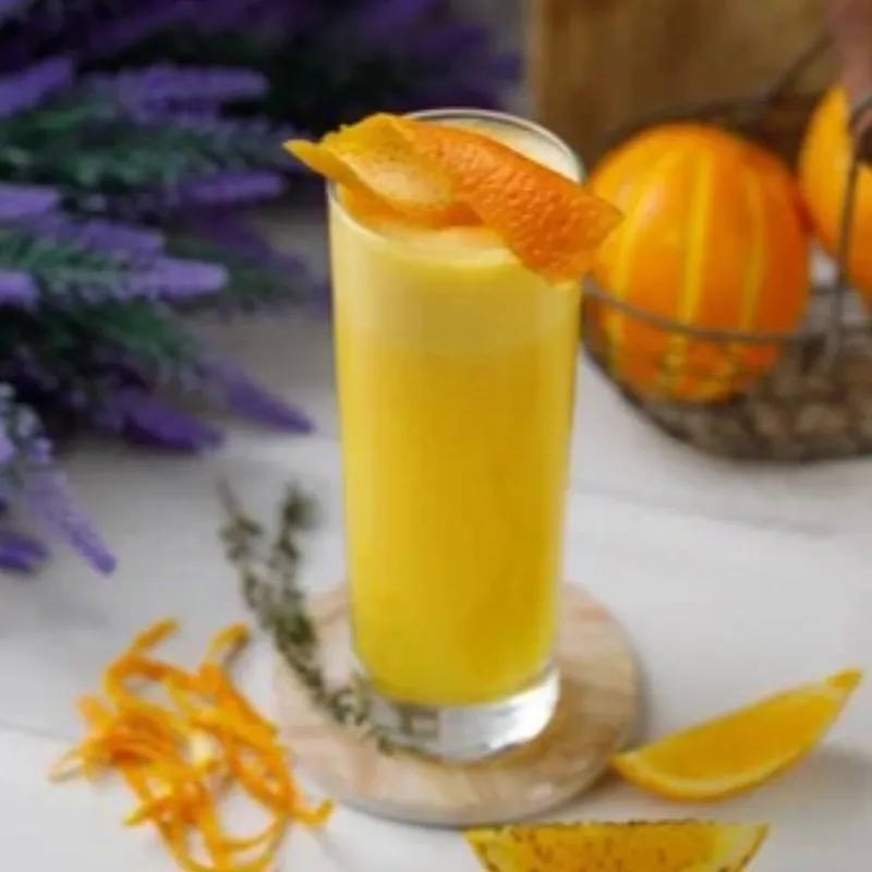 Микс из пюре, апельсина и манго, мята ,лимонный сок, содовая, лед