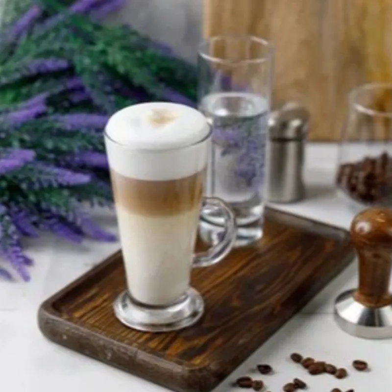 На основе порции эспрессо и молока, с плотной молочной пенкой