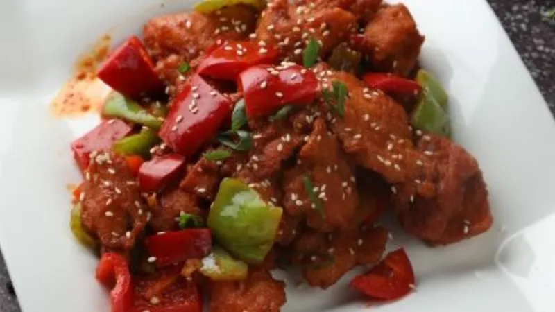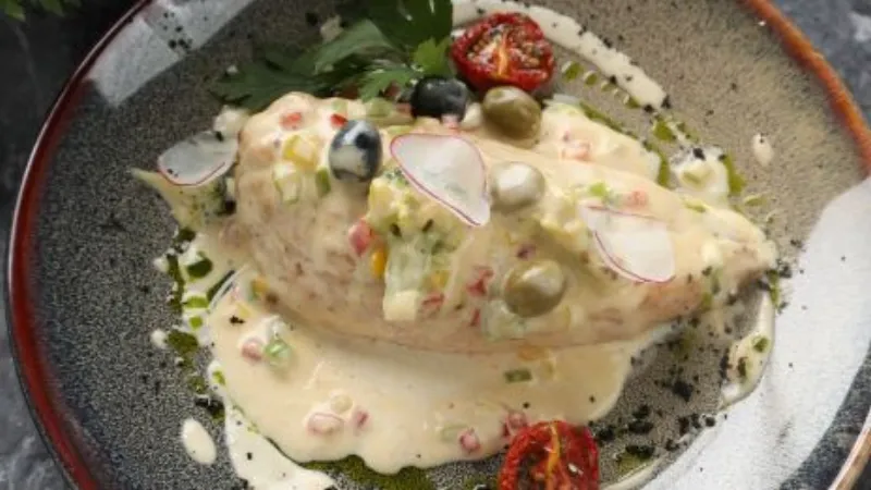 Куриное филе, перец полугорький, лапиза, соус устречный