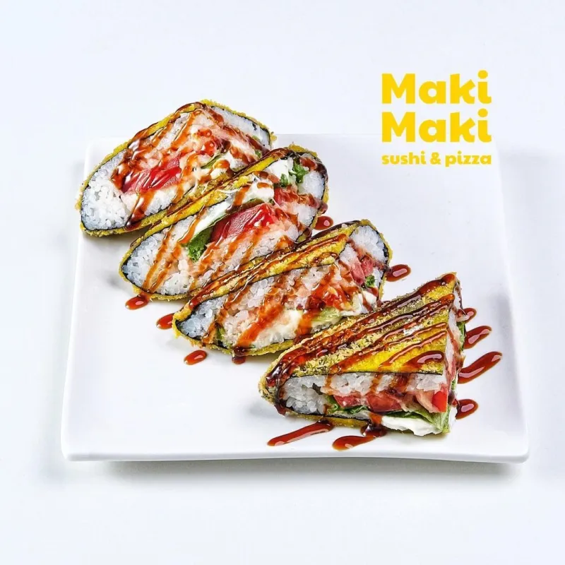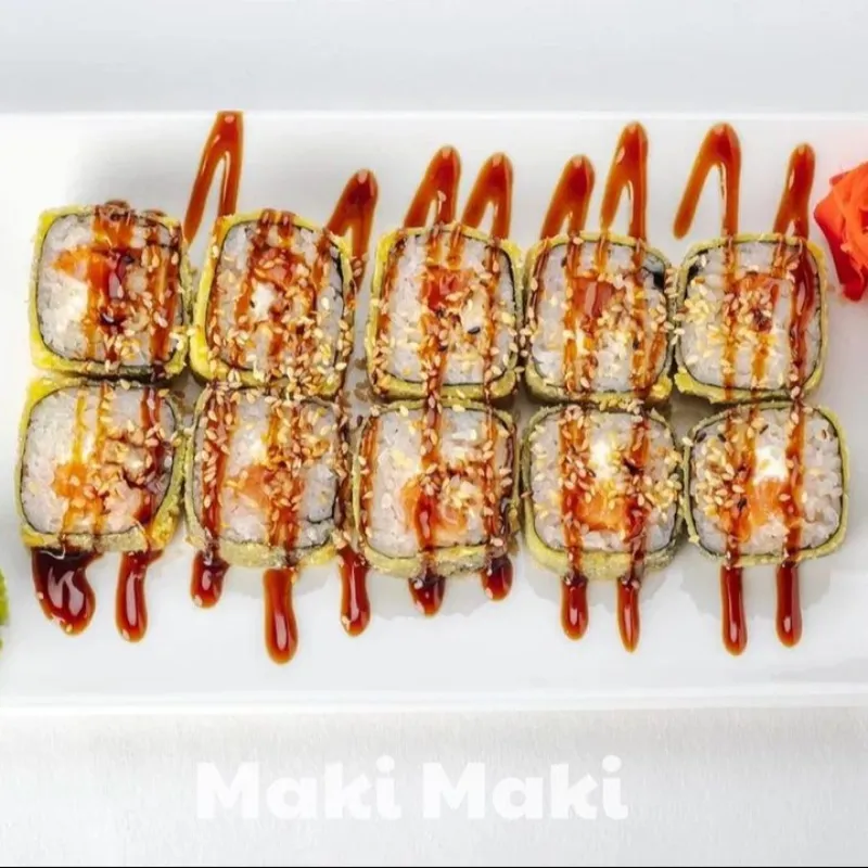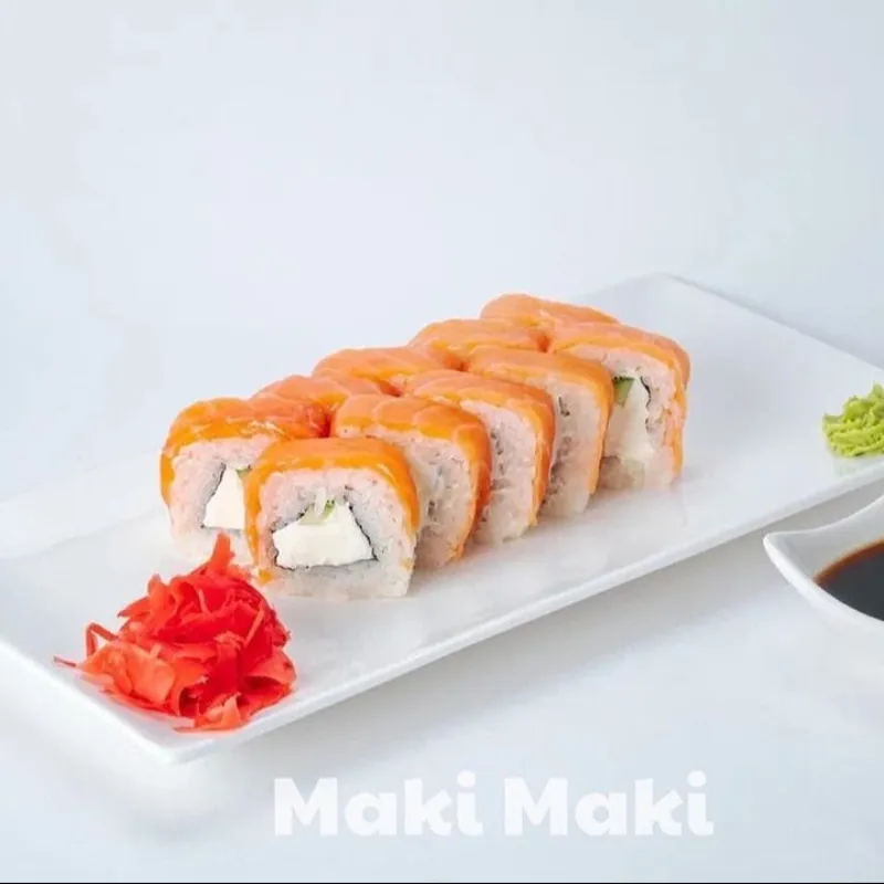 Филадельфия; Лосось темпура; Цезарь запеченный; Каппа маки; Фри 250 гр.; Пицца 4 сезона; Пицца Маргарита; Coca-Cola 1 л.