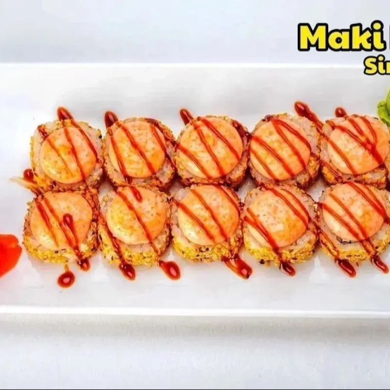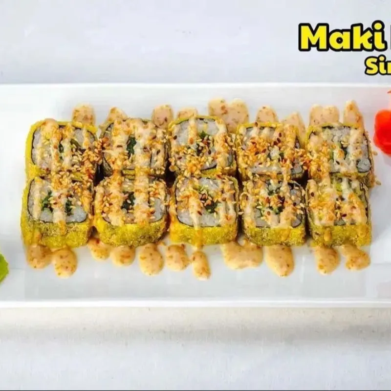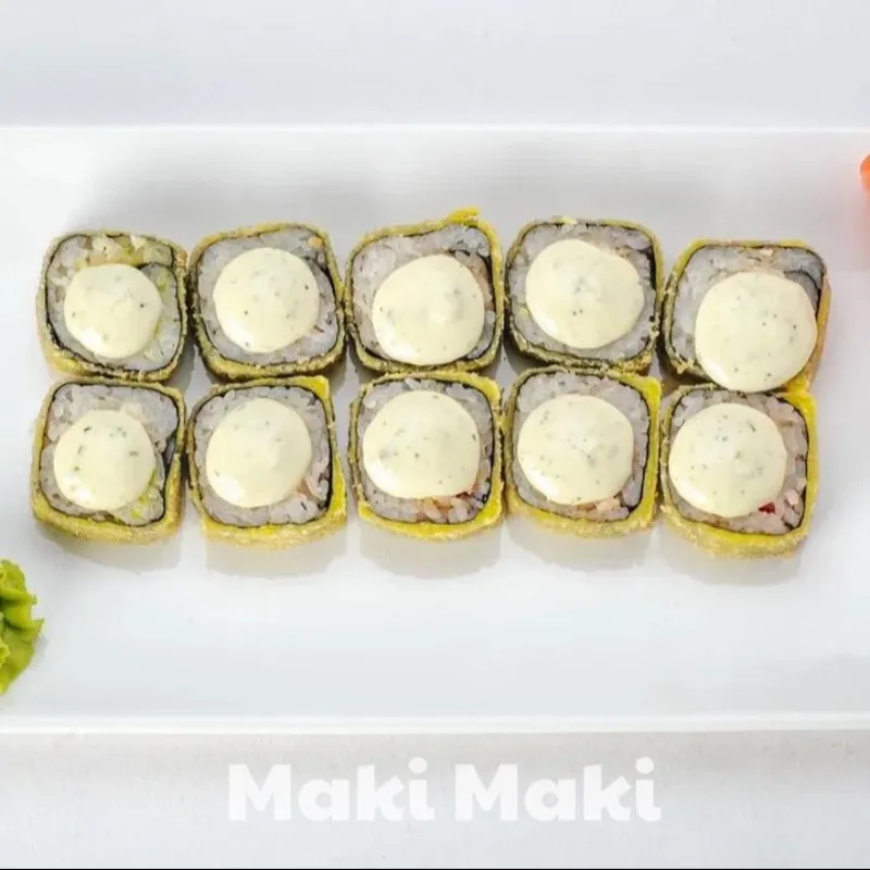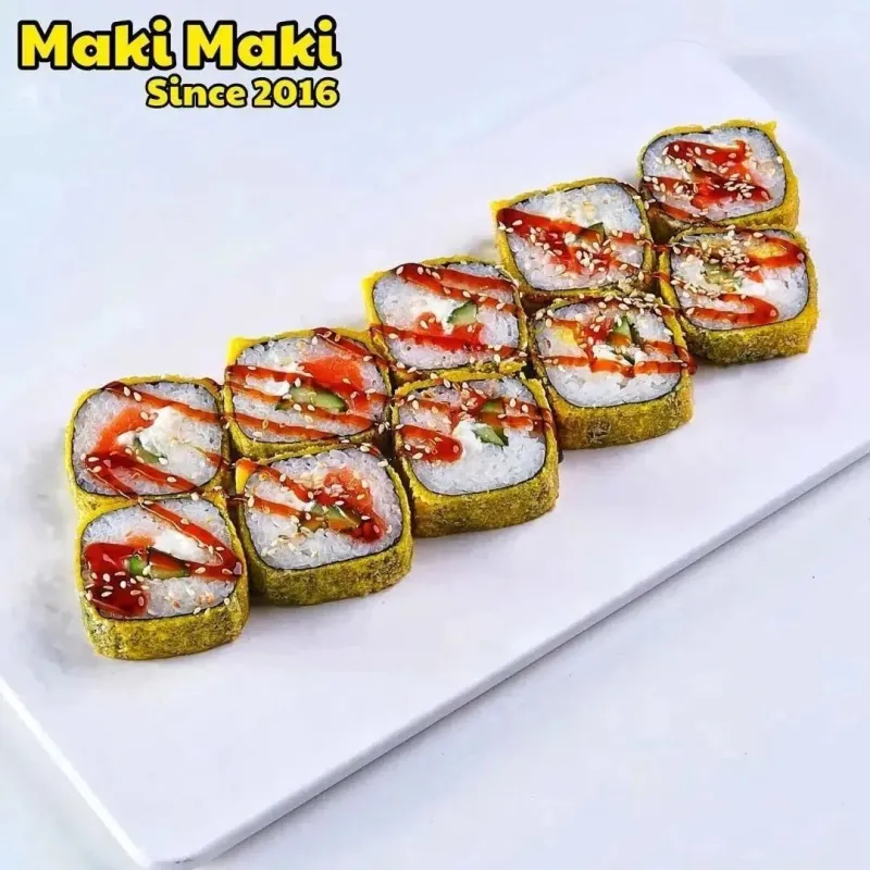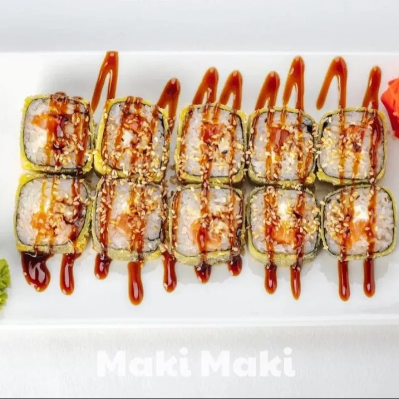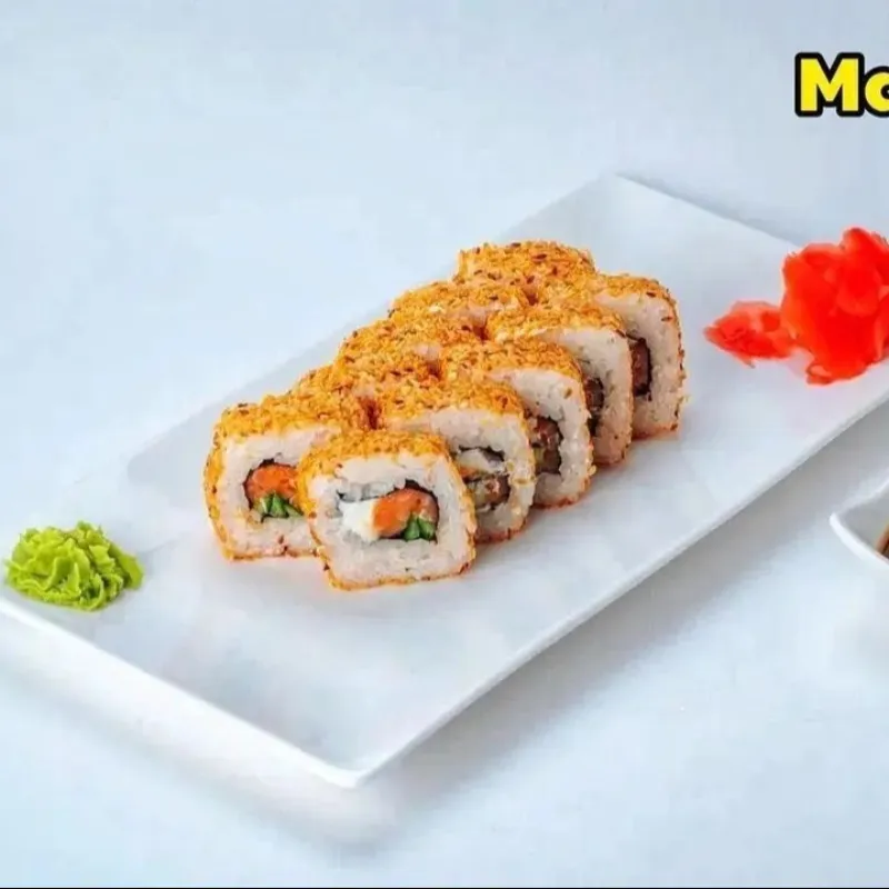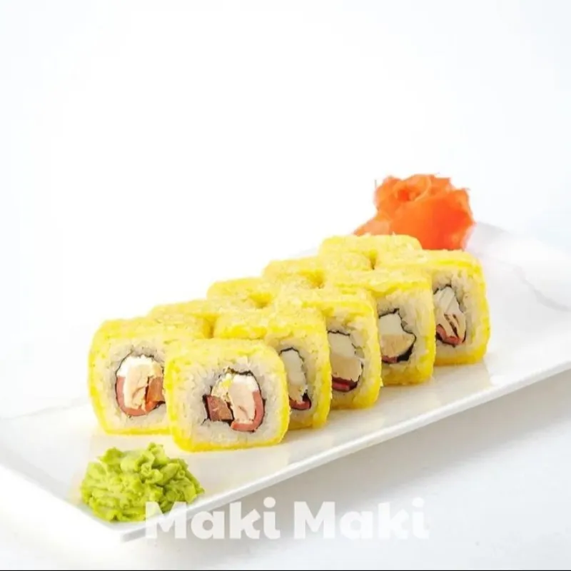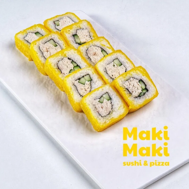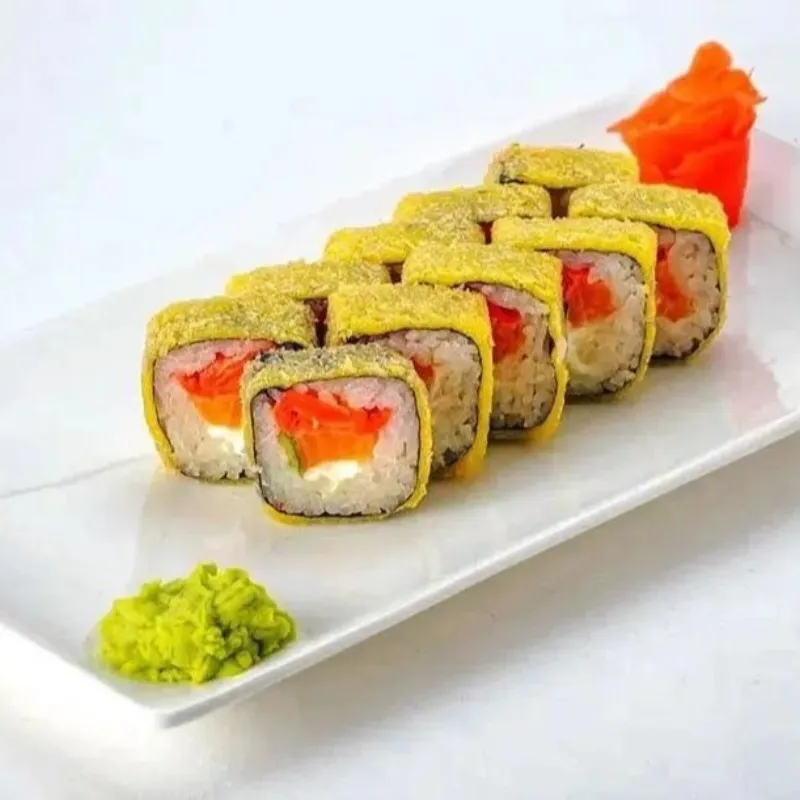 (сливочный сыр, лоссось, имбирь, огурец, кляр)