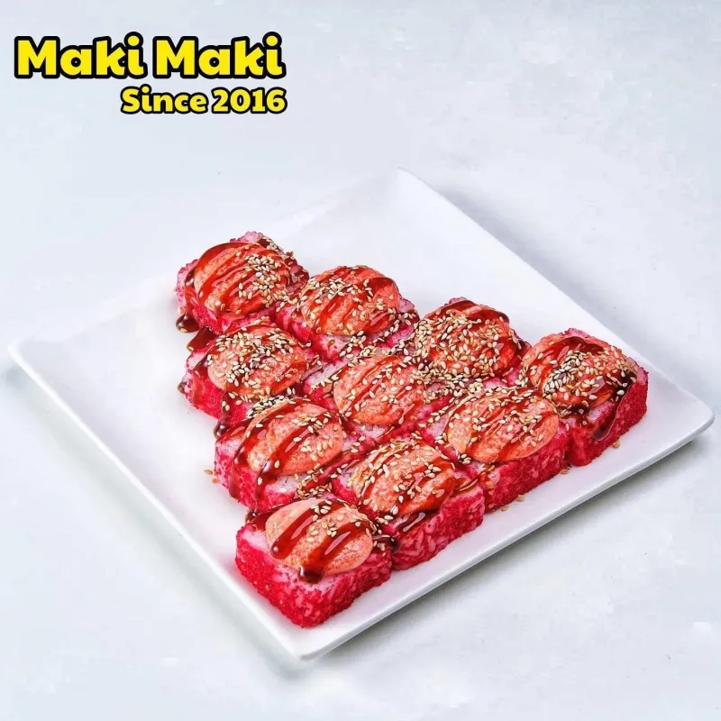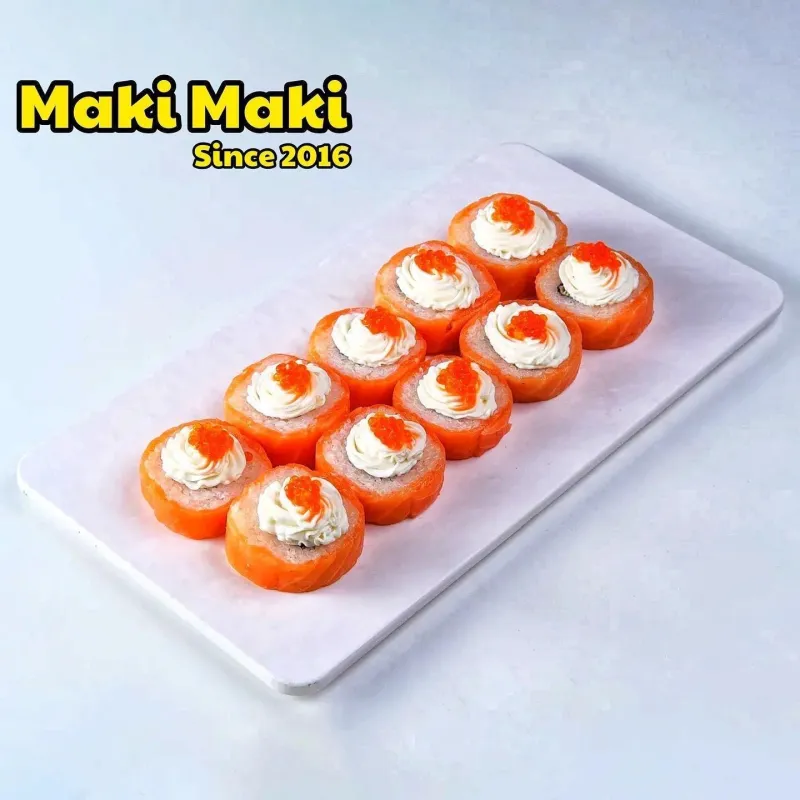 (сливочный сыр, огурец, лосось, розовый соус, тобико)