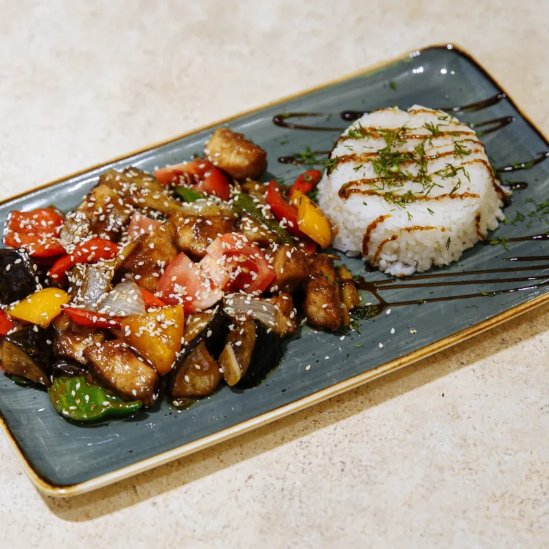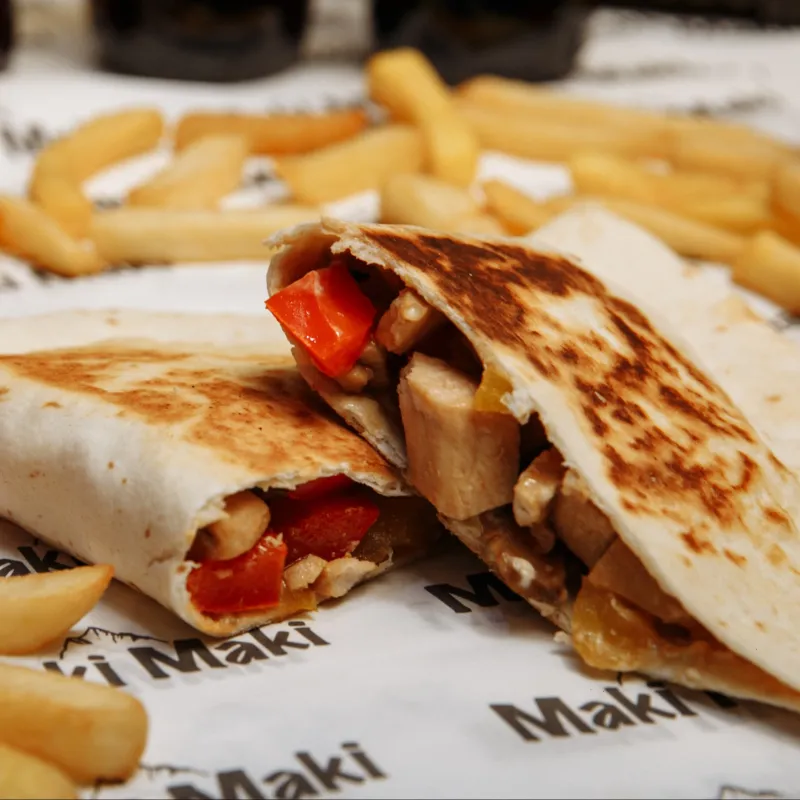 (тортилья, филе куриное, перец болгарский, грибы, майонез, сыр моцарелла)