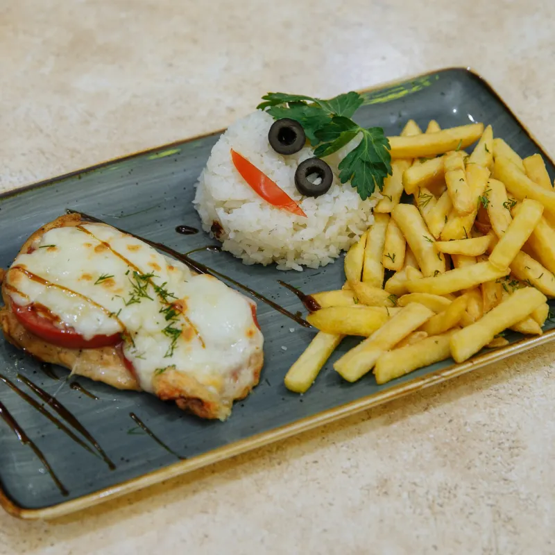 Цезарь запеченный; Крылышки 6 шт.; Фри; Пицца Маргарита; Coca-Cola 1 л.