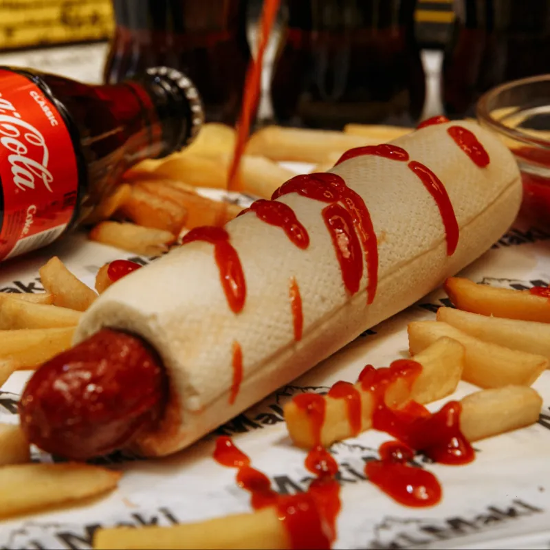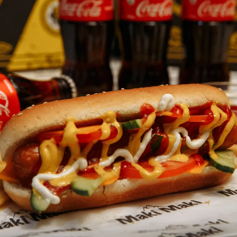 (булочка, сосиска на выбор говядина/курица, кетчуп, майонез)