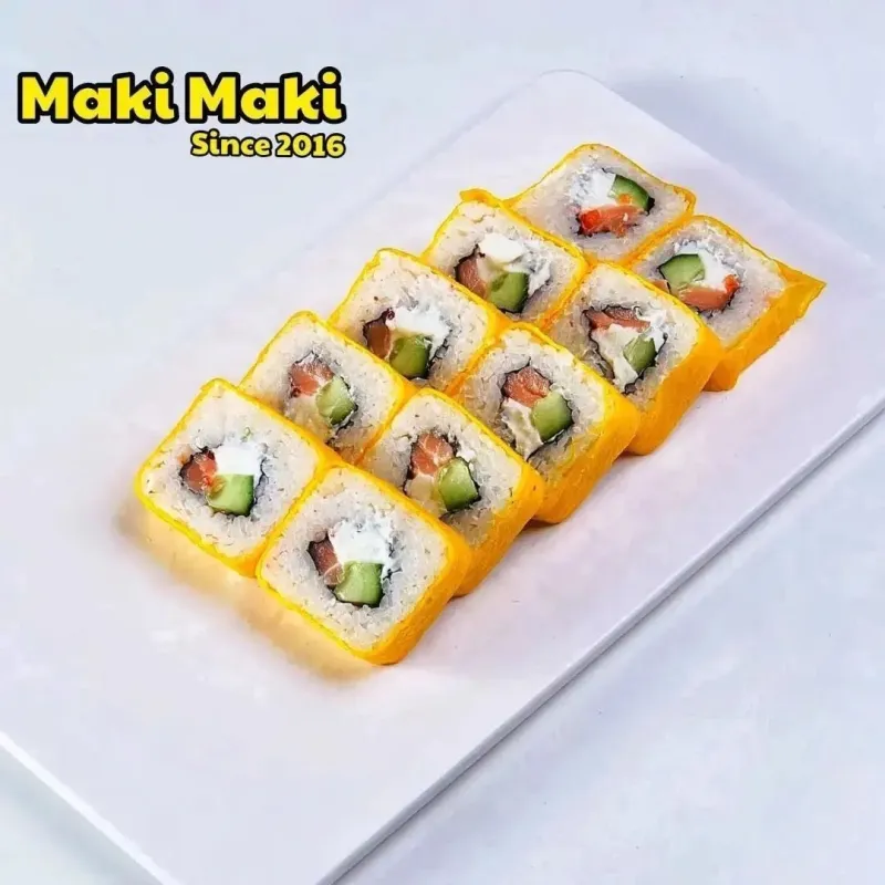(креветка, сливочный сыр, омлет, сыр моцарелла, тобико)