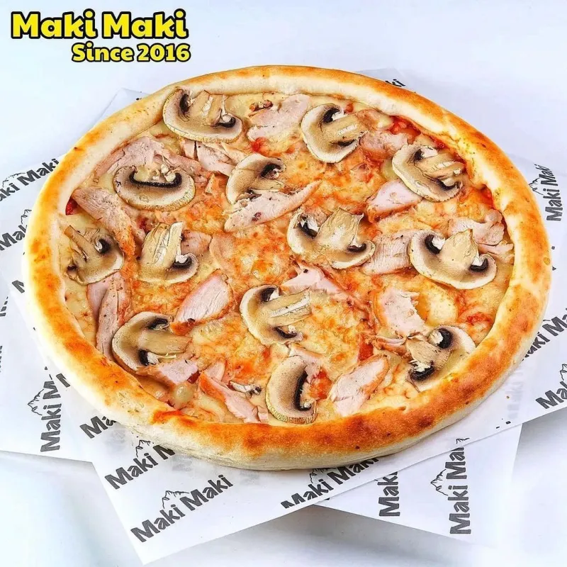Америка 10 шт.; Филадельфия 10 шт.; Цезарь 10 шт.; Пицца куриная с грибами в сырном соусе; Крылышки 16 шт.; Coca-Cola 1 л.
