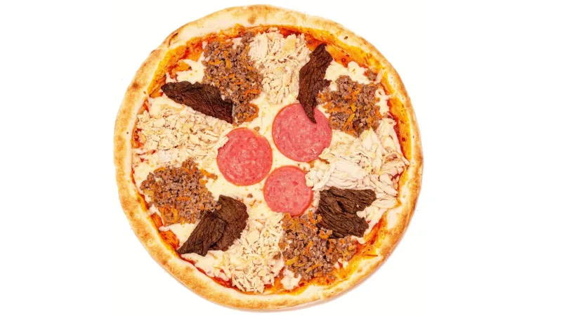Филе говядины · фарш говяжий · куриная грудка · салями · сыр моцарелла · соус маринара