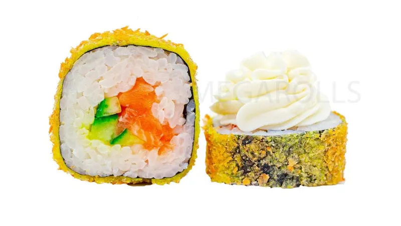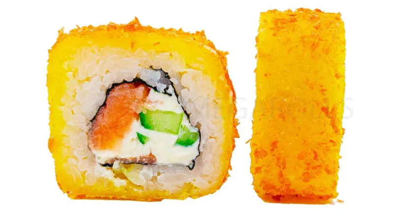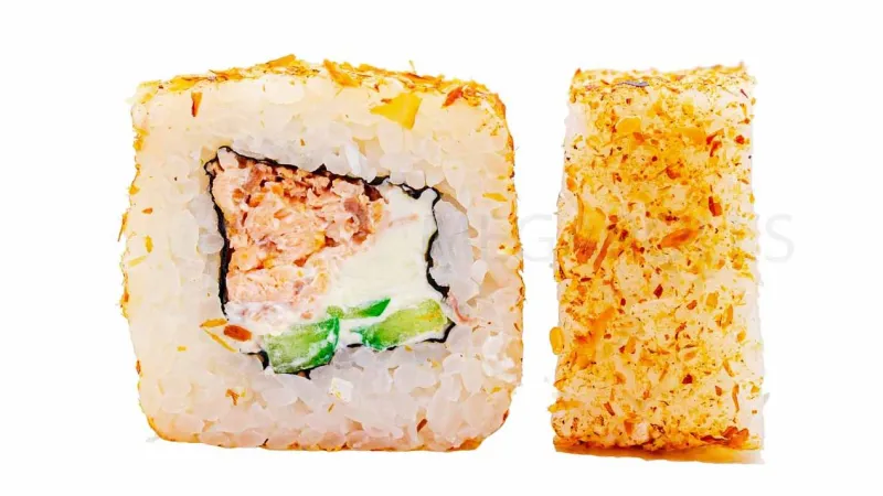 Жаренный лосось · сыр филадельфия · огурец · стружка тунца
