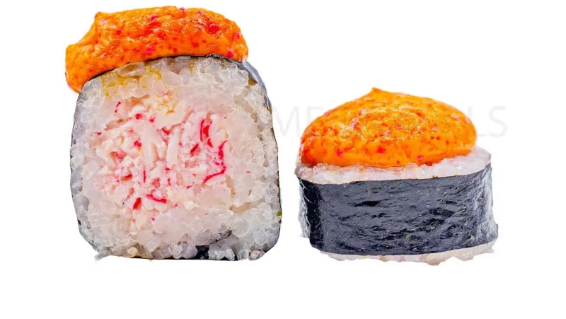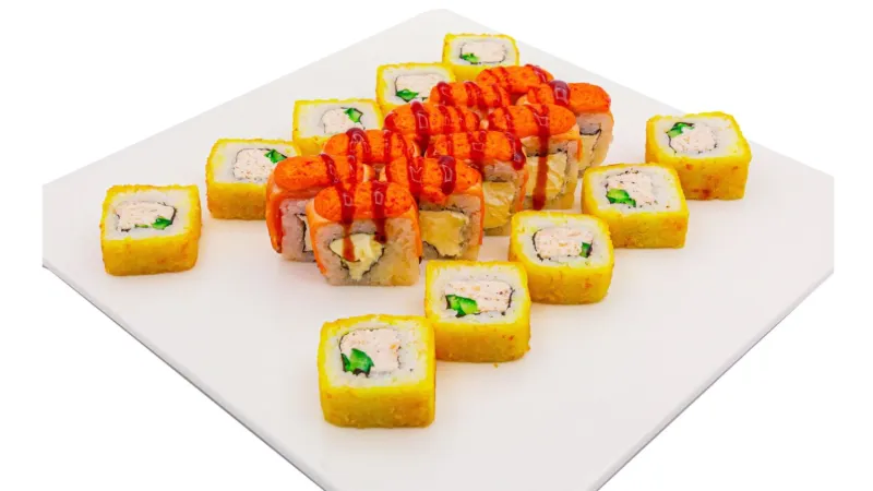 Крабовый микс · икра тобико · огурец · соус лава