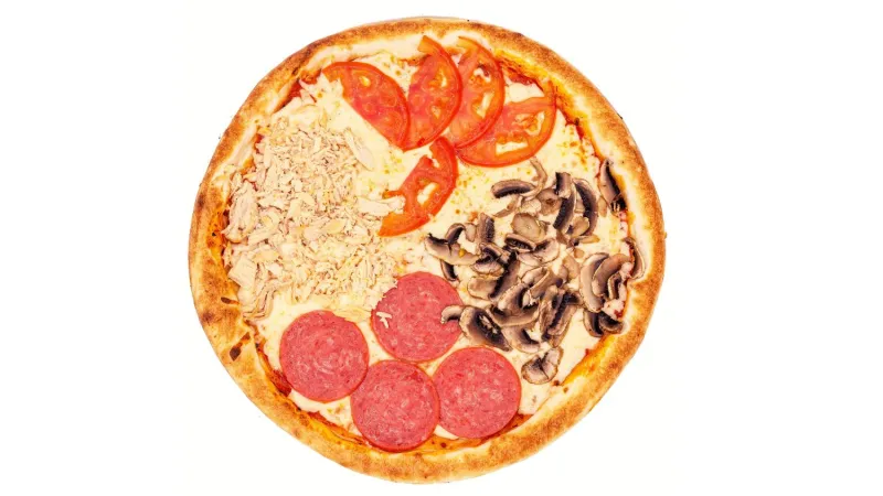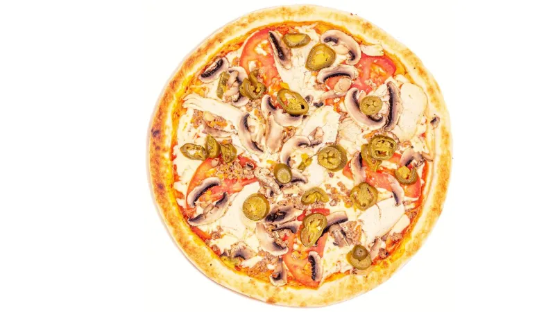 Шампиньоны · куриное филе · фарш говяжий · помидоры · перец халапеньо · сыр моцарелла · соус маринара