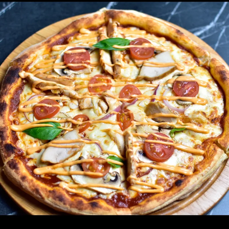 (Моцарелла,томатный соус,куриное филе,спайси соус,пармезан,микс трав)