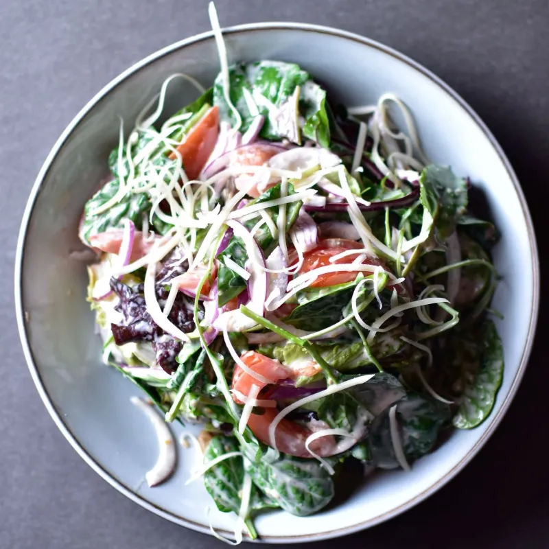 (свежие овощи, микс трав, лола росса, гренки, соус “Песто”)