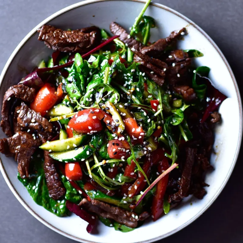 Свежие овощи,говяжий вырезка,яйцо,соус медовый горчичный