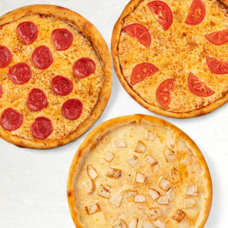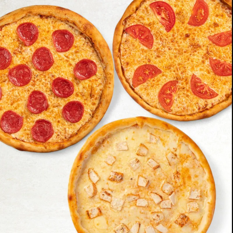Выгодное комбо из пицц: маргарита, пепперони, куриная в сливочном соусе + 1L Coca-cola в подарок