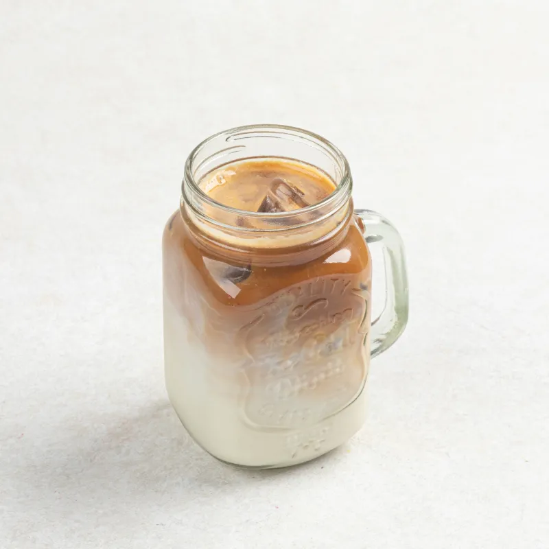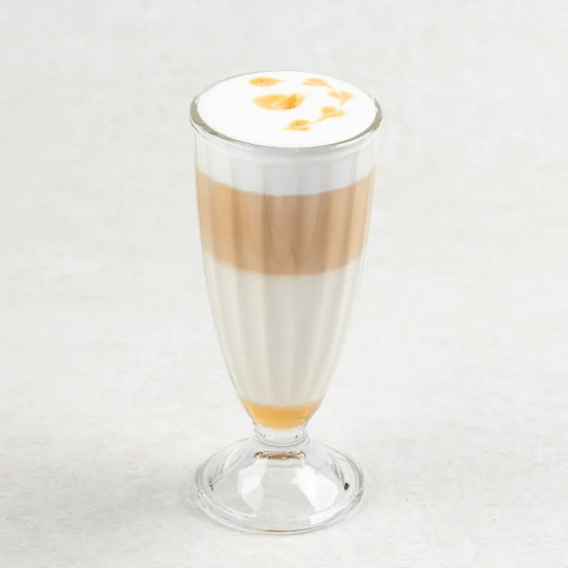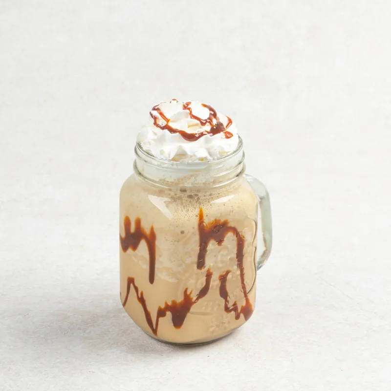 Эспрессо, карамельный/шоколадный сироп, лёд, мороженое, сливки, молоко, топпинг.
