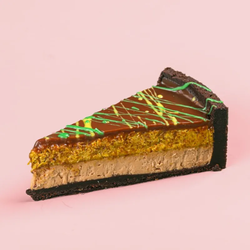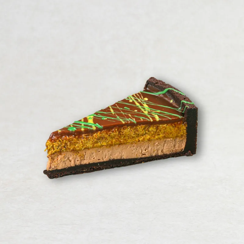Шоколадный корж — шоколадно-творожная основа с начинкой из фисташковой пасты и хрустящего катаифи