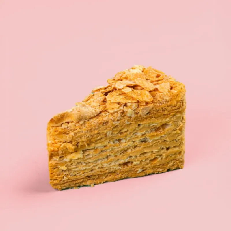 Хрустящие слоёные коржи, пропитанные кремом из натуральных сливок и варёной сгущёнки