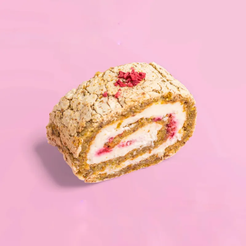 Фисташковый рулет — изысканный бисквит дакуаз с фисташковой мукой, наполненный сливочно-творожным кремом с Маскарпоне и свежей малиной