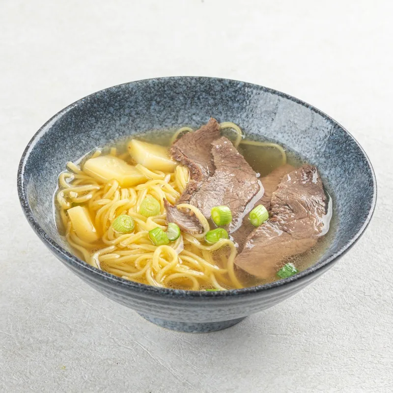 Нежная отварная говядина, пшеничная лапша и картофель в ароматном бульоне с добавлением зелёного лука