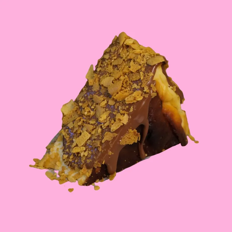Нежный чизкейк на основе творожного сыра с кремовой текстурой, поливается бельгийским шоколадом и хрустящими вафельными хлопьями.
