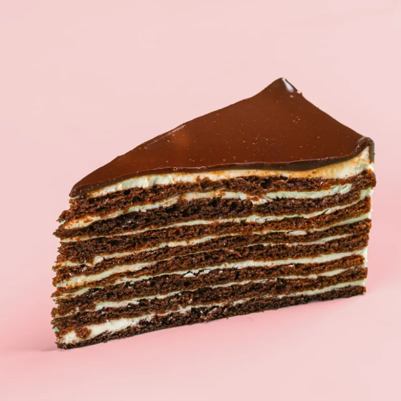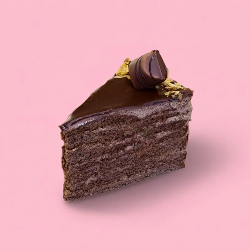 Хрустящие шоколадные коржи с нежным шоколадно-сливочным кремом. Между слоями — шоколадно-вафельная крошка, придающая легкий хруст.