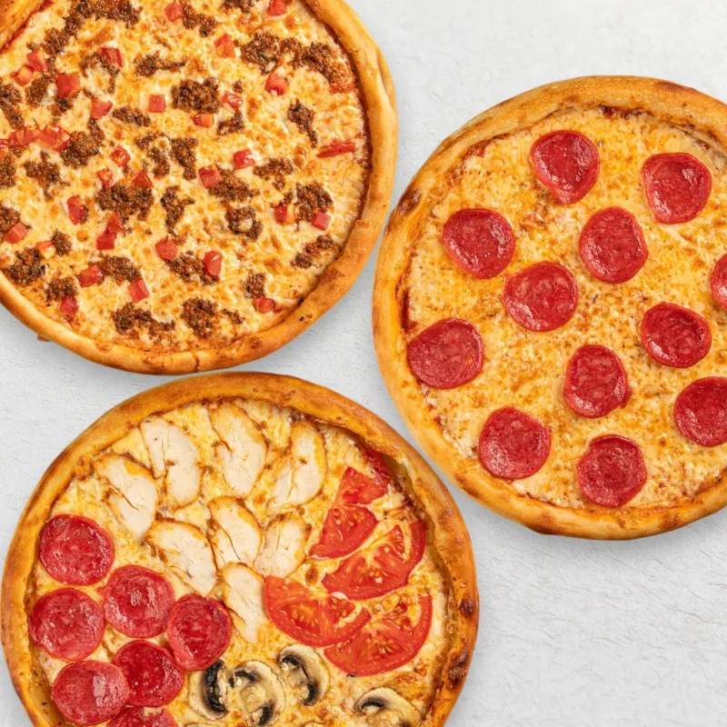 Выгодное комбо из пицц: маргарита, пепперони, куриная в сливочном соусе. 1L Coca-cola в подарок