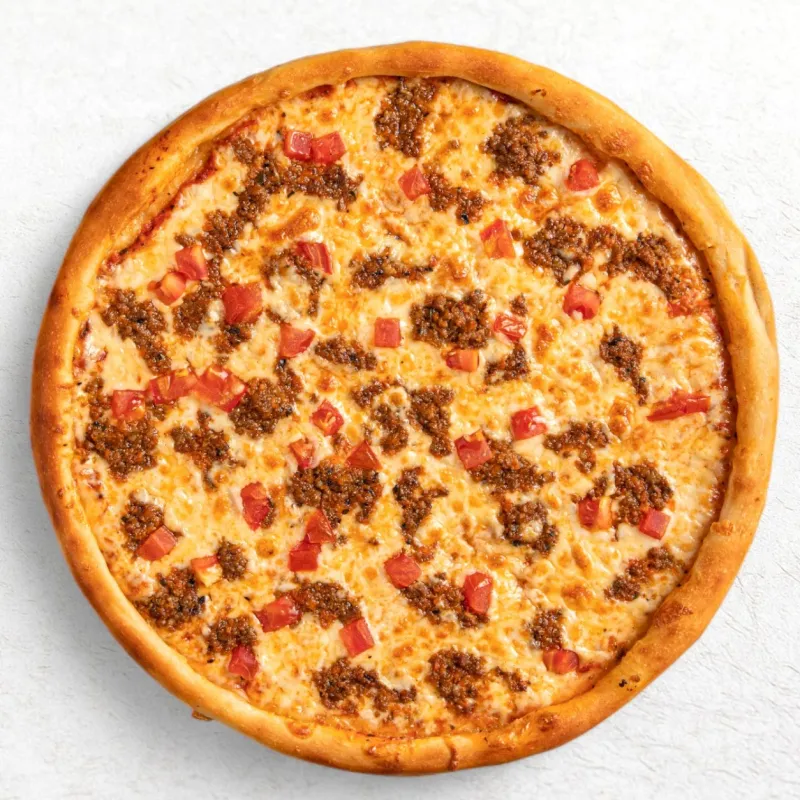 Томатный соус, говяжий фарш, помидоры, сыр моцарелла