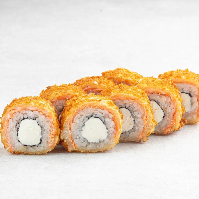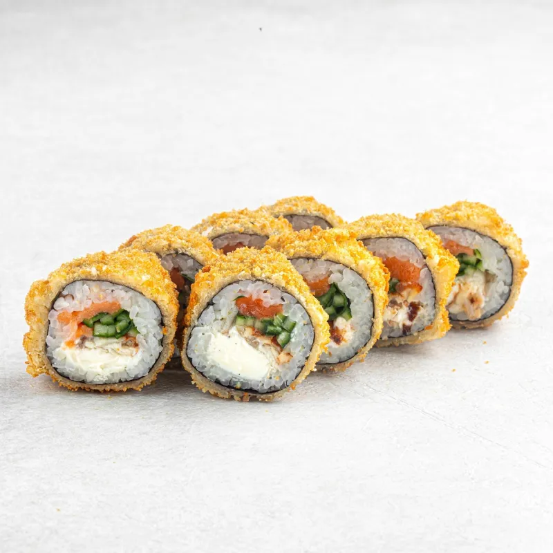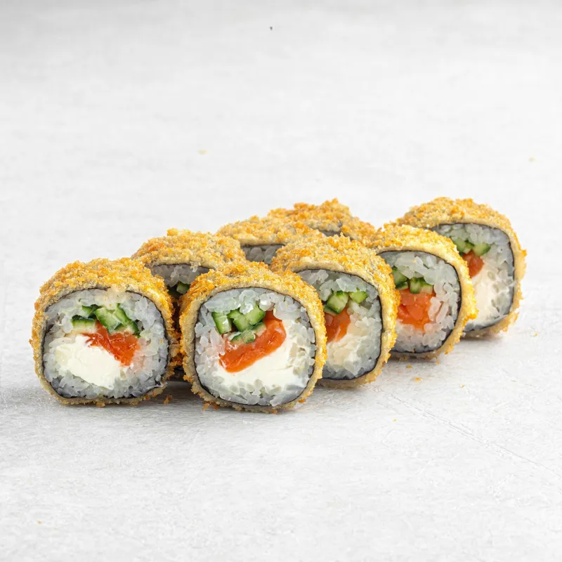 Филадельфия - 8 шт Лосось темпура - 8 шт Аляска с курицей запечённая - 8 шт Аляска с лососем запечённая - 8 шт Яссай темпура с лососем - 8 шт