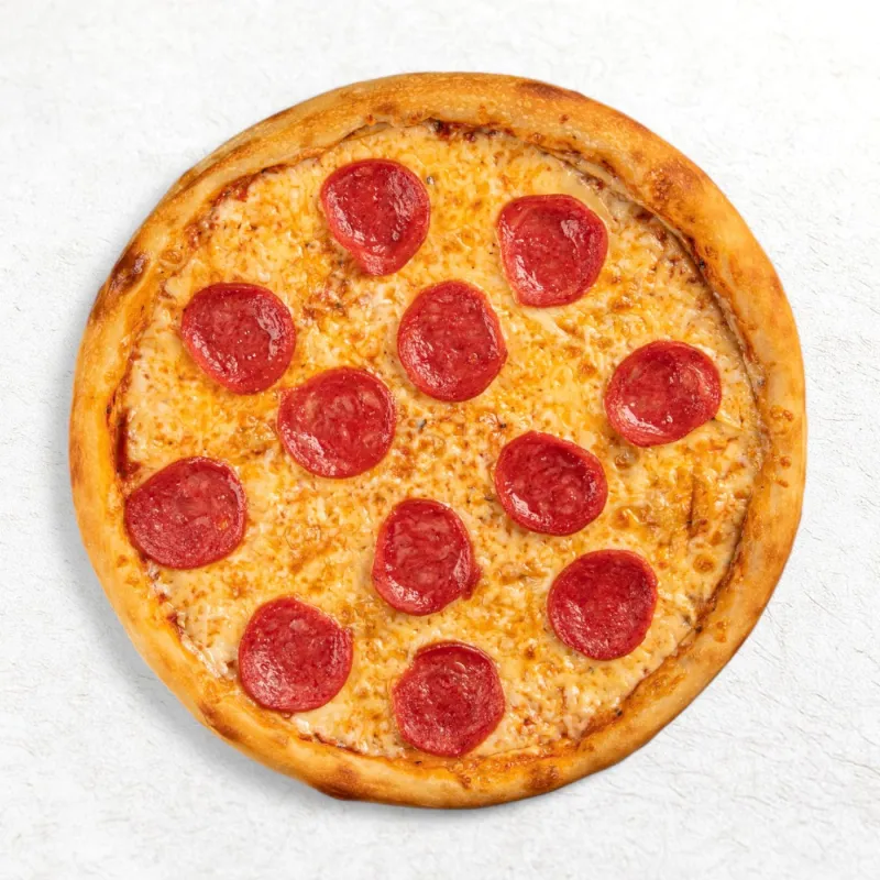 Томатный соус, колбаски пепперони, сыр моцарелла