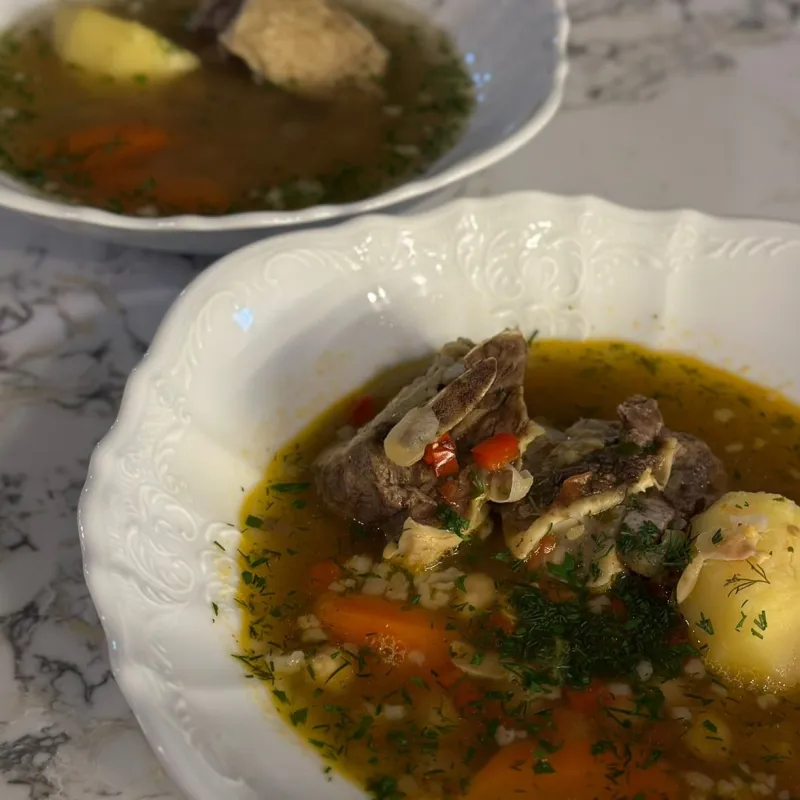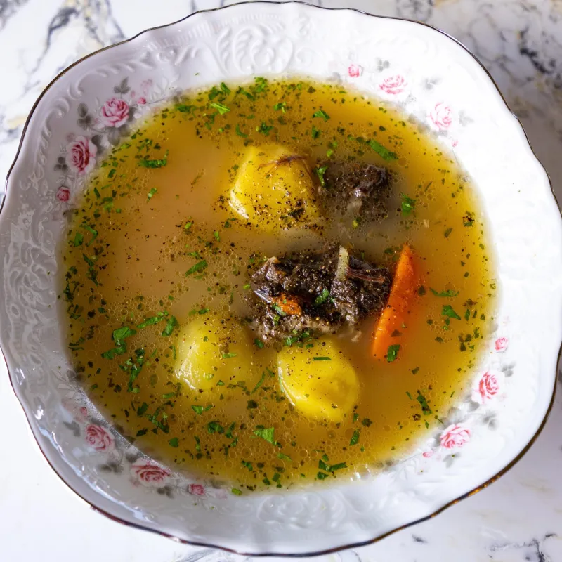 Традиционный наваристый бульон с говяжьего ребра с нутом