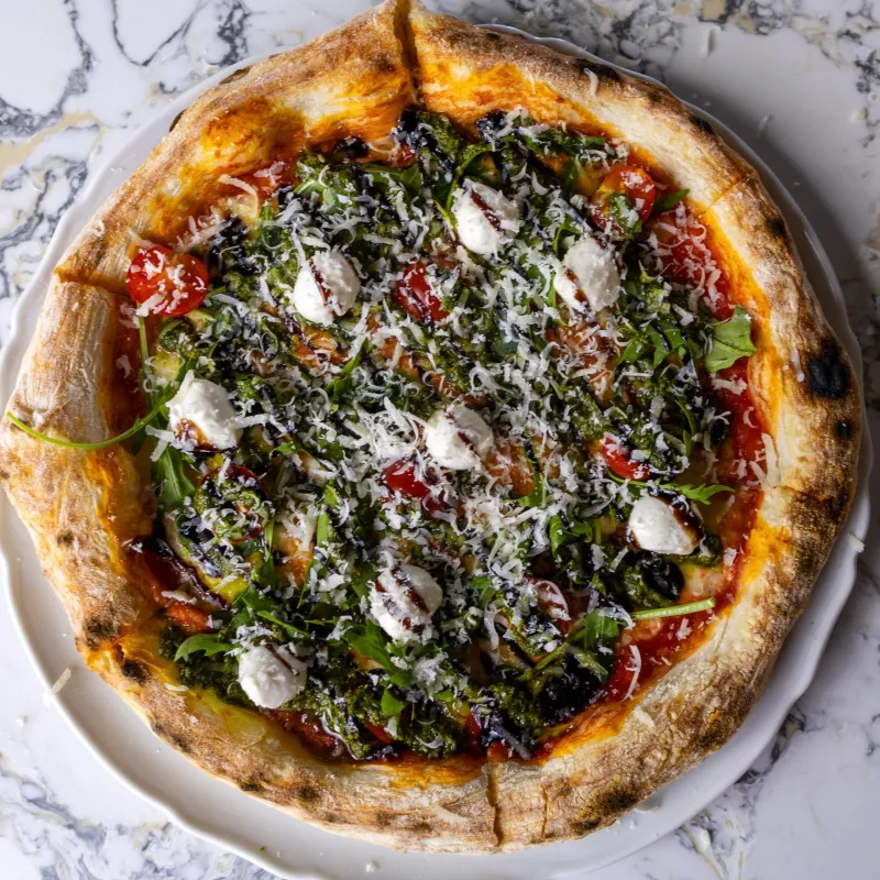 Руккола, песто, моцарелла, томаты