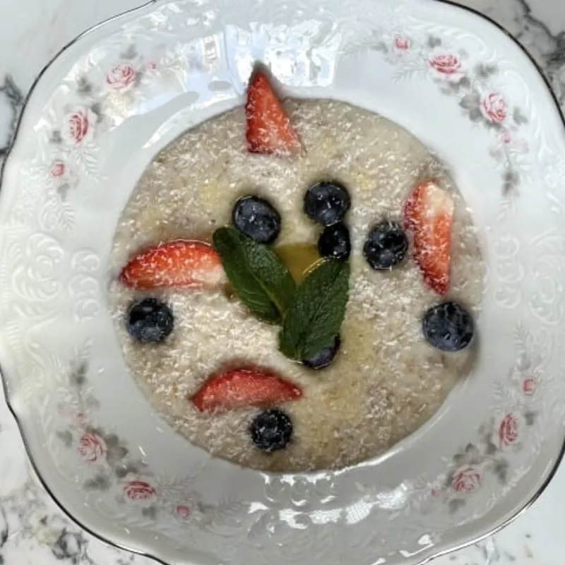 Крупа геркулес кокосовое молоко, ягода по сезону
